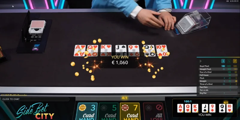 Side bet city là một biến thể thú vị của trò chơi poker, nơi người chơi không đấu với nhau mà chỉ đặt cược vào kết quả của các lá bài được chia. Được phát triển bởi Evolution Gaming, trò chơi này tập trung vào các cược phụ, mang lại trải nghiệm mới mẻ và hấp dẫn cho người chơi.